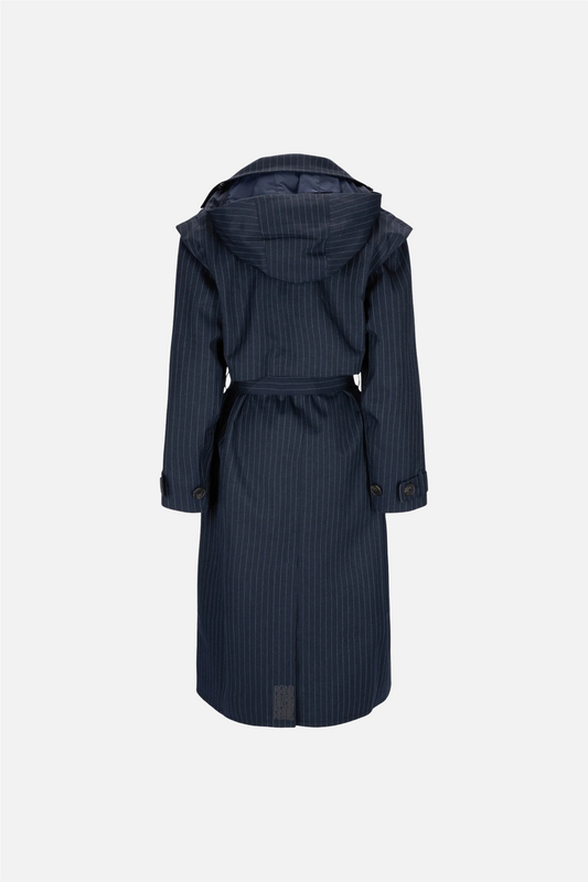 Regndråpe Trench Coat Navy Pinstripe