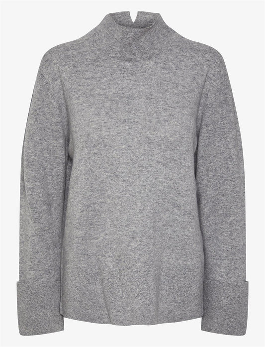 YasEmilie Highneck Knit Pullover Light Grey Melange