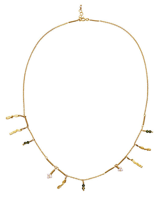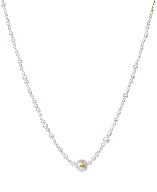 Fresh Water Pearl Necklace 8 mm 40 cm W/Gold Beads Gold