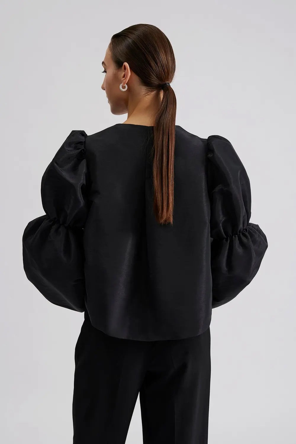 Zoey Blouse fra by Malina er en vakker bluse med lange ermer og doble puff-ermer som gir et feminint og luftig uttrykk. De elastiske båndene i ermene sørger for en behagelig passform og en flatterende silhuett. Blusen har en klassisk frontlukking med hemper og små hekter, noe som tilfører et elegant preg. Zoey Blouse er perfekt både til hverdags og fest – style den med jeans for en uformell look eller med dressbukser for en mer sofistikert stil.