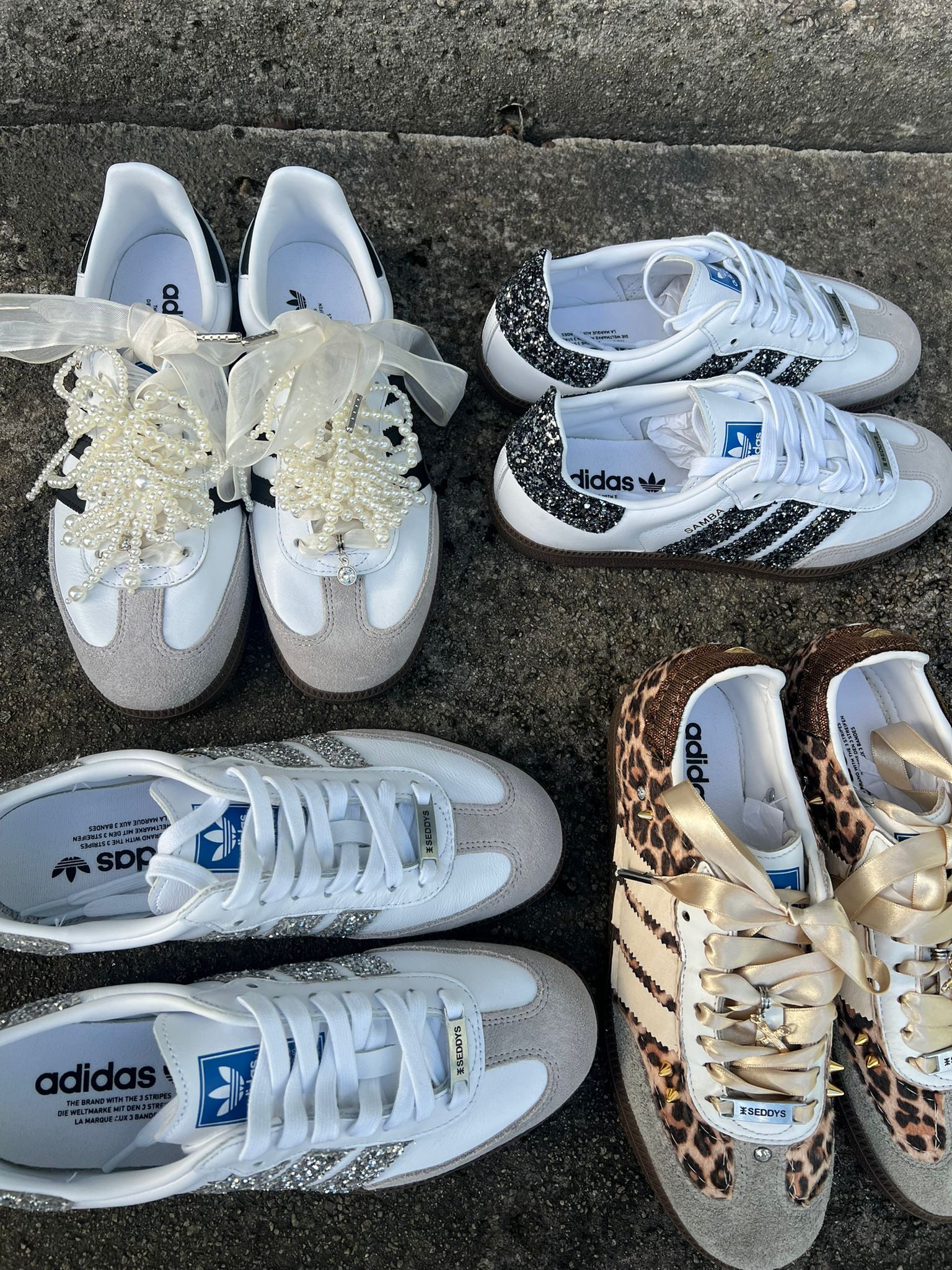 Adidas samba x Seddys. Adidas Samba har tatt verden med storm og Seddys har gjort de enda kulere. Leopardprint og statement silkebånd-lisser i off-white.