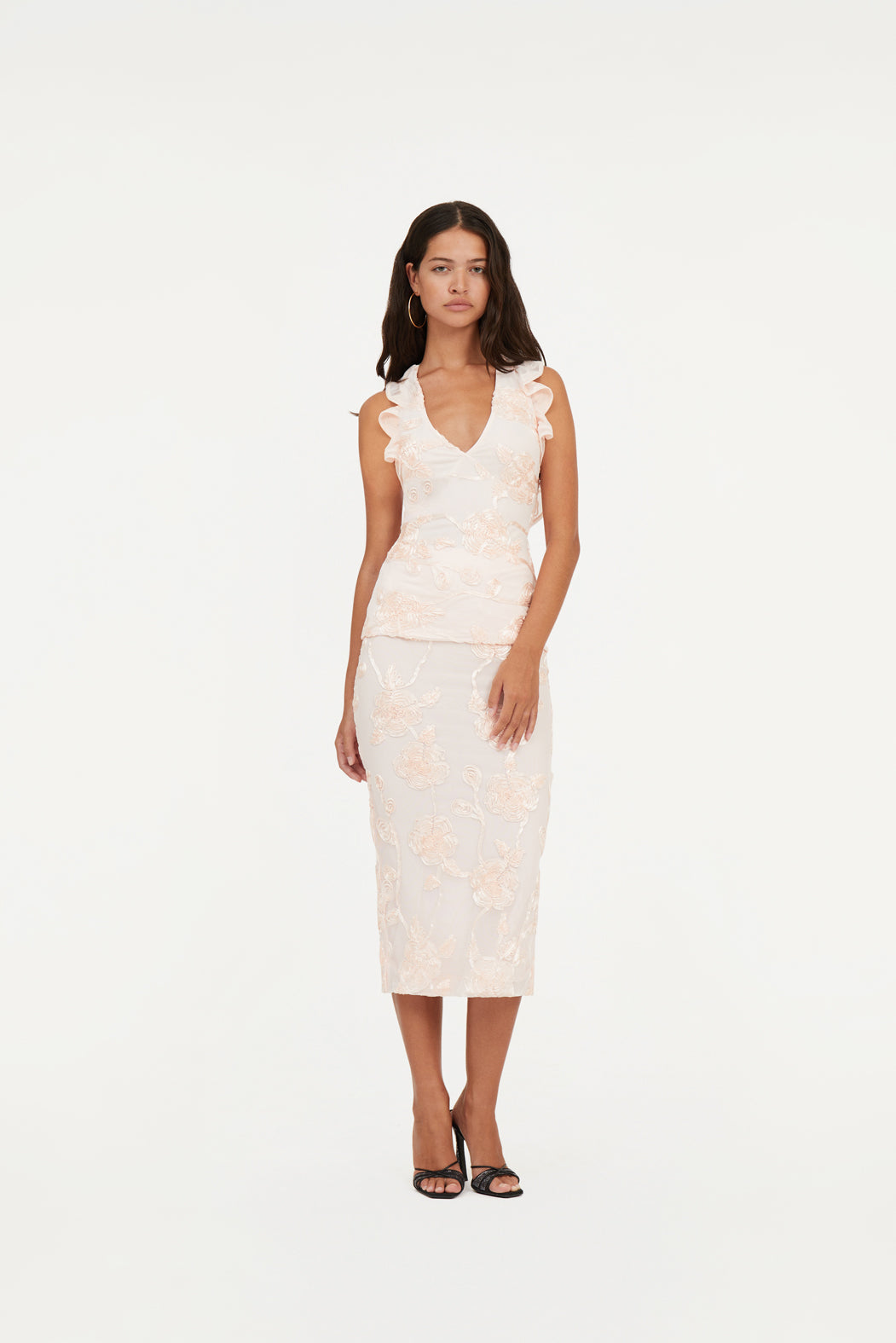 Flower Mesh Ruffle Top fra Rotate er en leken og feminin topp med vakre volangdetaljer som gir et romantisk uttrykk. Den har delikate spagettistropper på ryggen som tilfører en sofistikert og luftig touch. Perfekt for både festlige anledninger og sommerdager, denne toppen kan styles med alt fra et elegant skjørt til casual jeans for en trendy look.