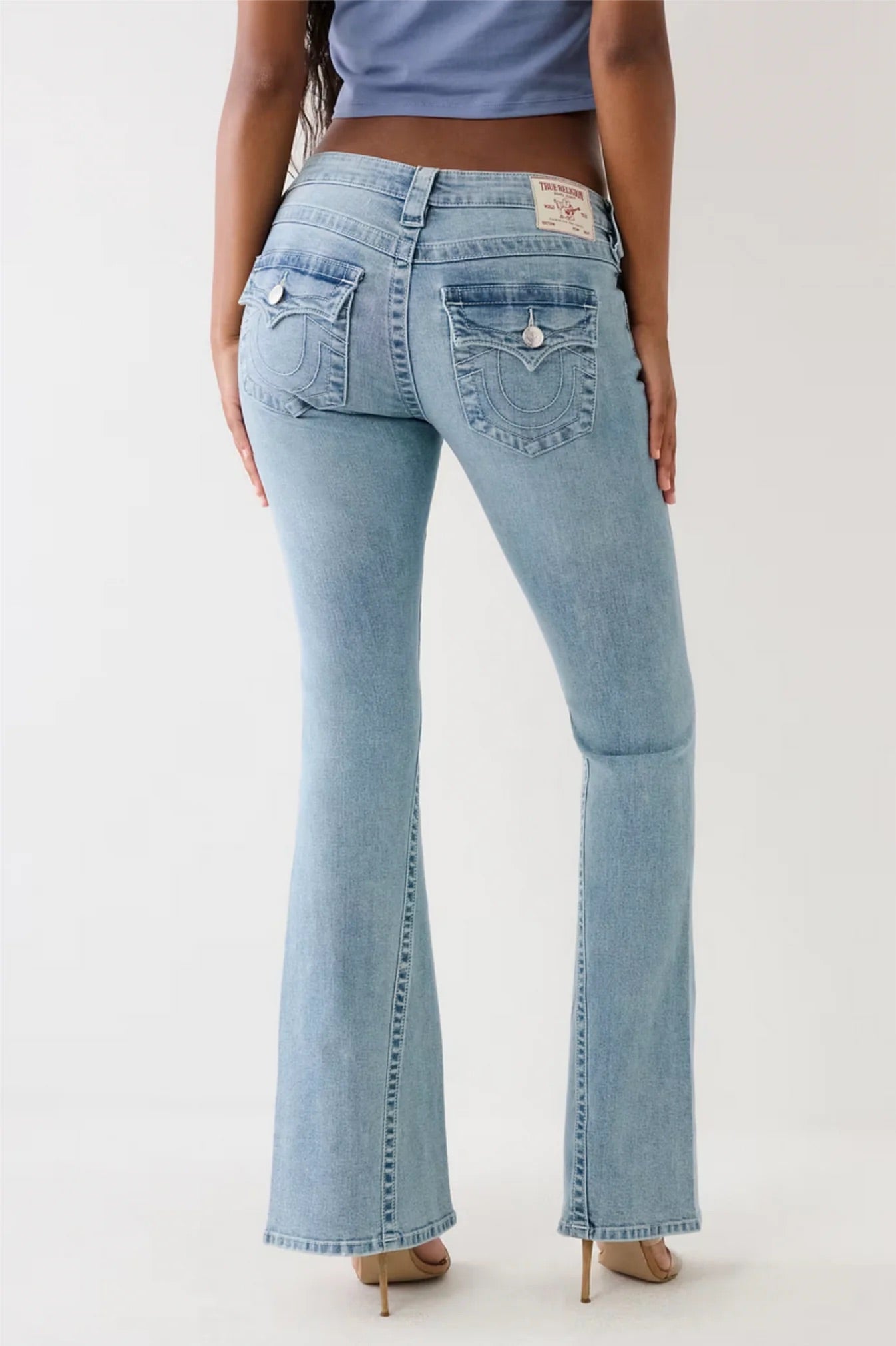 Joey Low Rise Flare fra True Religion er en denimfavoritt med en lav midje og flatterende sleng. Joey Low Rise Flare Jean har en tidløs silhuett med whiskering-effekt, enkel nålesøm og en unik vridd innersøm for et edgy uttrykk. Bak finner du True Religions signatur-horseshoe-detalj på klafflommene, som gir et ikonisk preg. En perfekt jeans for deg som elsker en vintageinspirert, men moderne stil.