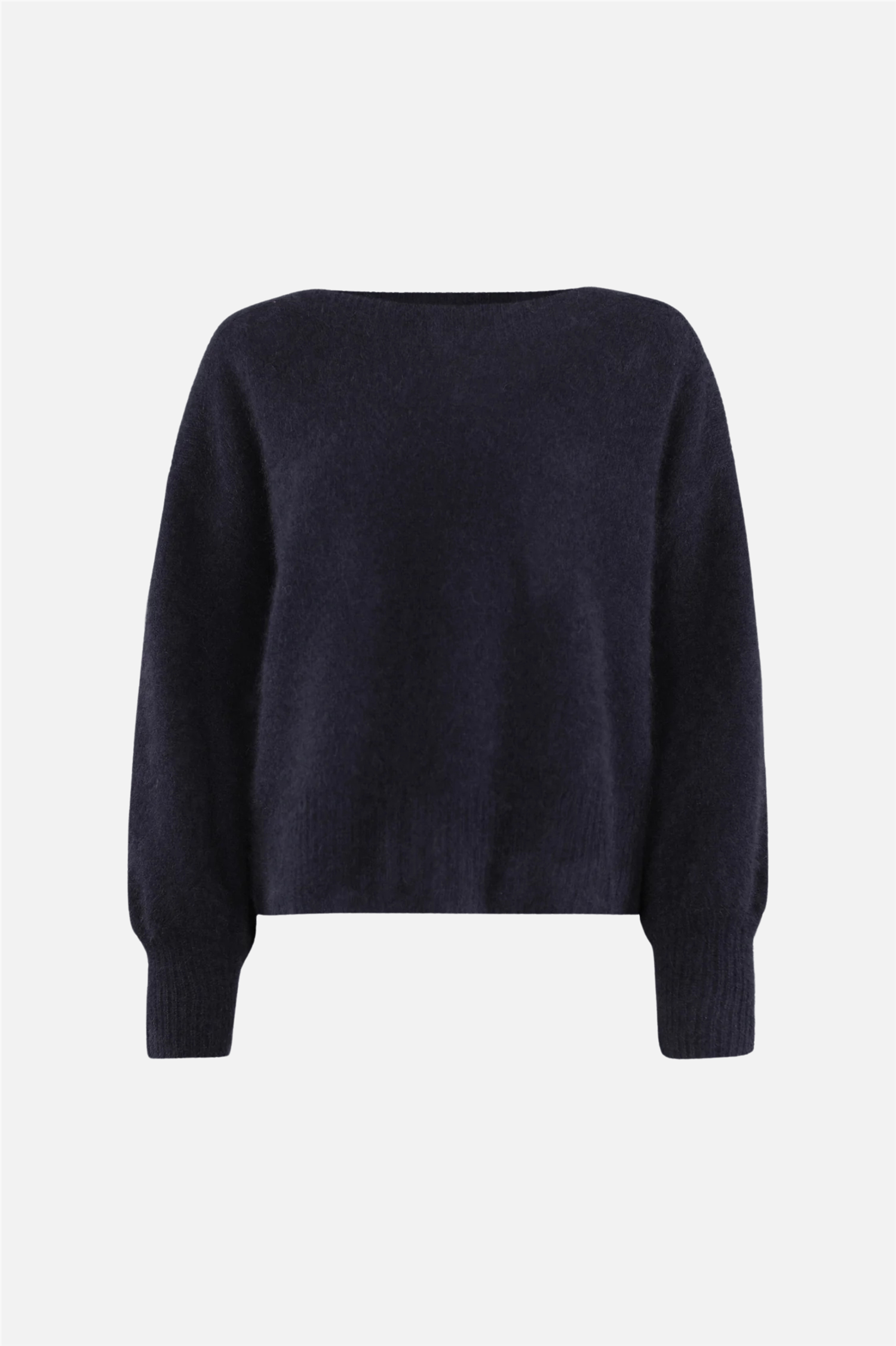 Malou fra Six Ámes er en luksuriøs genser laget av mykt vaskebjørnhår, perfekt for en stilren og komfortabel look. Den har en elegant båthals, droppede skuldre og lange ermer, noe som gir en avslappet passform med et sofistikert preg. Malou har fine ribbedetaljer langs halsen og skuldersømmene, samt en bredere ribbekant ved mansjettene og falden for en flatterende silhuett. Style Malou fra Six Ámes med dressbukser for en elegant og tidløs look, eller bruk den over en silkekjole for en moderne kontrast mellom myke og glatte teksturer.