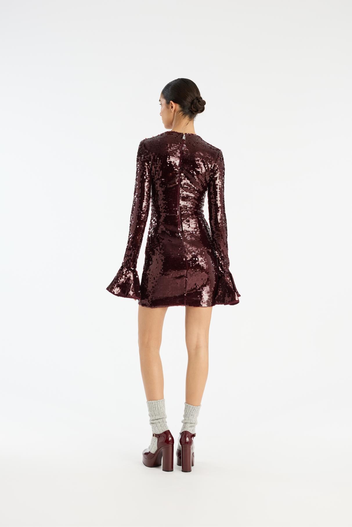 Sequins LS Mini Dress fra Rotate er en glamorøs statementkjole perfekt for sesongens festligheter. Denne minikjolen er dekket av paljetter i en dyp vinrød nyanse, og har en kroppsnær passform med voluminøse trompetermer som gir et dramatisk uttrykk. Med sin flatterende silhuett og glitrende finish, gjør Sequins LS Mini Dress fra Rotate seg like godt til julebord som til nyttårsfeiring. Style den med høye hæler og en enkel clutch for et komplett partyantrekk.