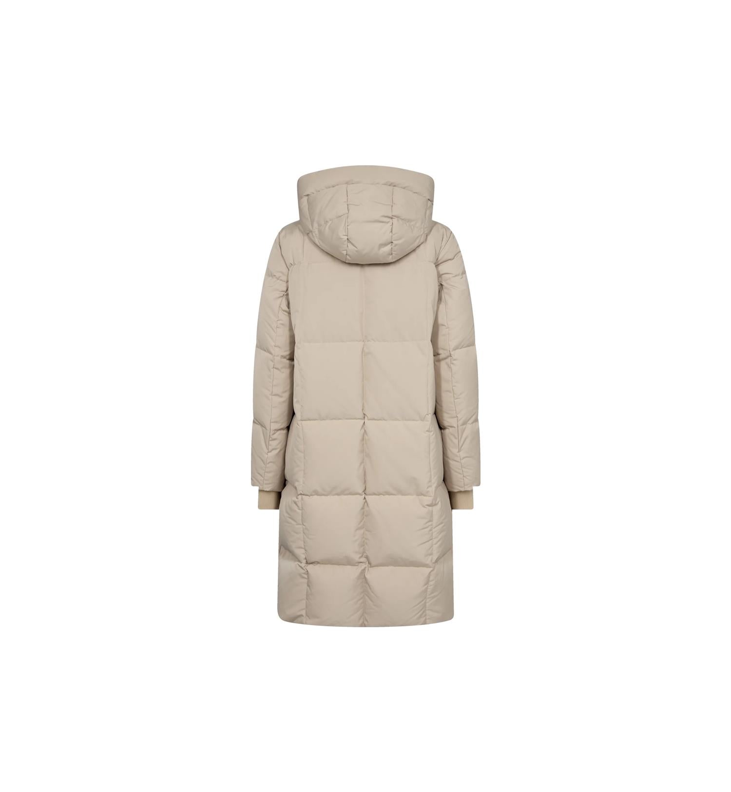Nova down Coat har en høy praktisk krage, en deilig hette, grove glidelåser og et moderne rutemønstret quilt-design som gir et røft og kult uttrykk. MMNova Square Down Coat fra Mos Mosh er fylt med ansvarlig produsert dun og har splitter i sidene som kan åpnes og lukkes med glidelås. Dette gir god bevegelighet, enten du rusler i byen eller haster til jobb. Style den med chunky boots og lue for en funksjonell, men stilsikker vinterlook.