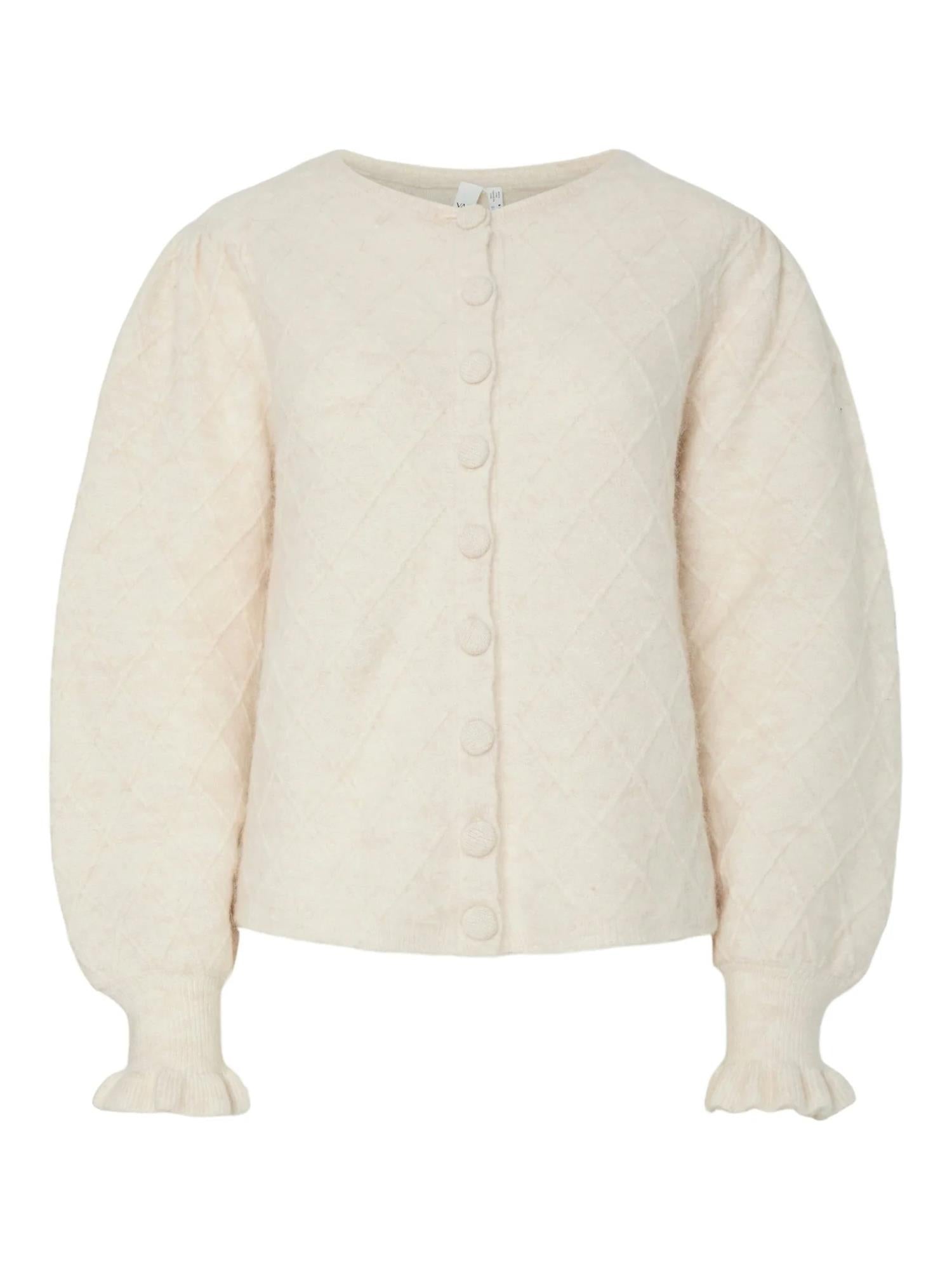 YASThelma LS Wool Blend Knit Cardigan Cream