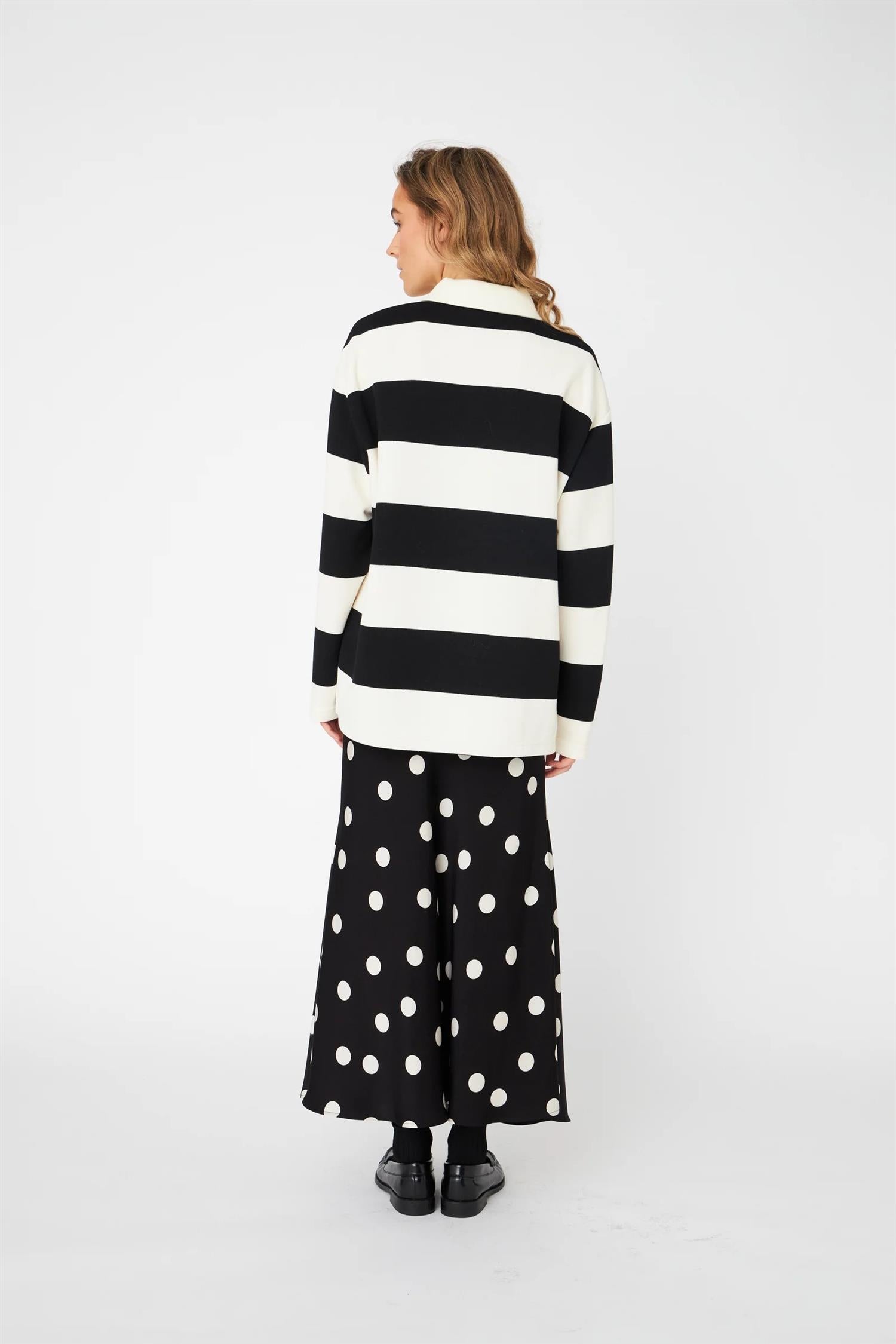 Bisoucras Blouse fra Cras Copenhagen er en oversized pologenser med brede striper og teksten "BISOU 1975" brodert foran. Den myke bomulls- og polyestermiksen gir en komfortabel følelse mot huden, samtidig som passformen gir et avslappet og urbant uttrykk. Perfekt å style med jeans eller til dressbukser for en leken og kul høstlook.