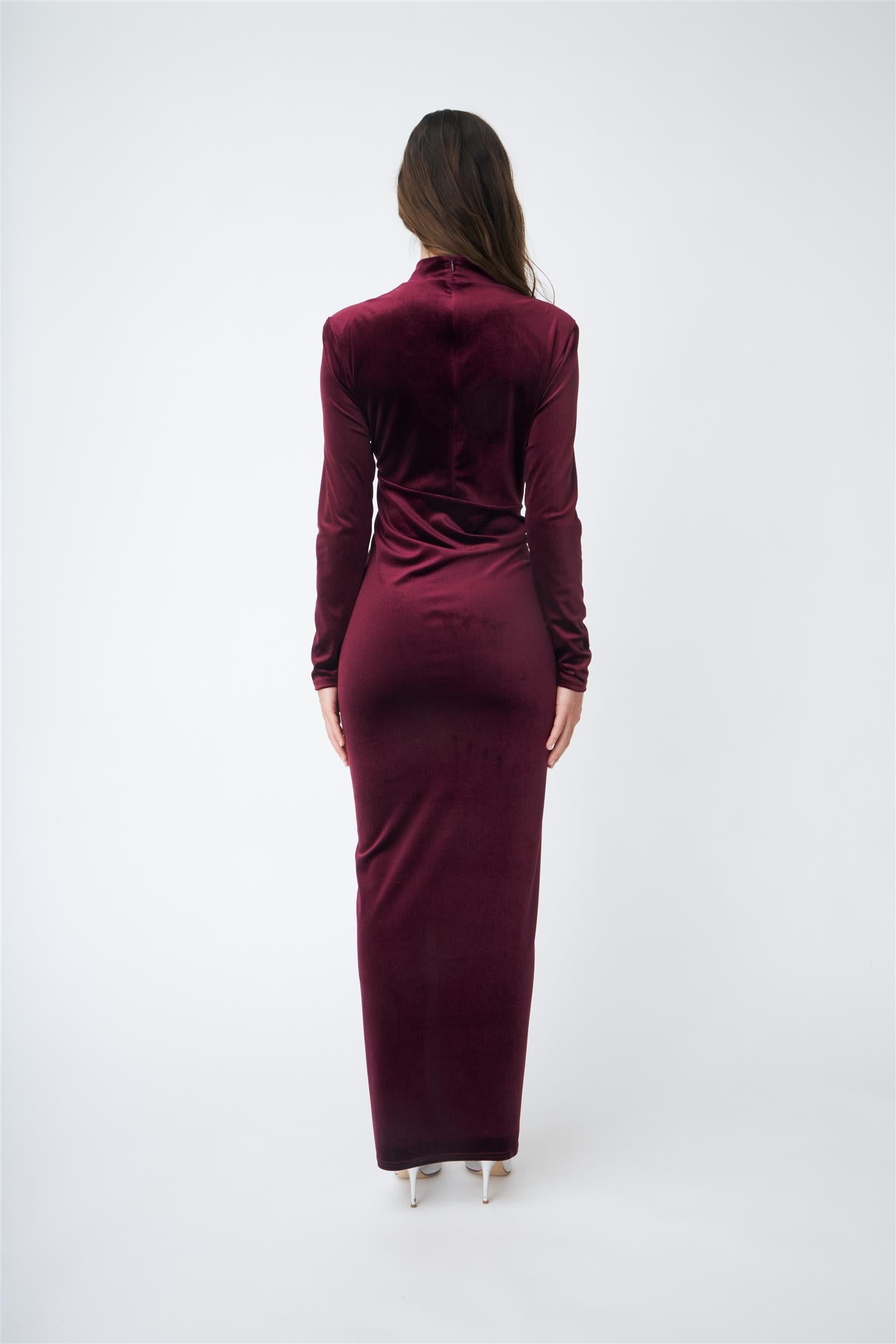 Glorycras fra Cras Copenhagen er en elegant maxikjole i nydelig burgunder velour med komfortabel stretch som gjør den perfekt til festlige anledninger som julebord og nyttårsaften. Glory Dress har en figurnær, smal silhuett som fremhever fasongen, med lange ermer og høy hals for en sofistikert look. Draperingene i midjen og omslagseffekten med en liten splitt i skjørtet gir kjolen et flatterende og feminint uttrykk. Rynkedetaljene i overdelen setter prikken over i-en og gjør Glorycras fra Cras Copenhagen til et must-have når du vil føle deg både komfortabel og glamorøs.