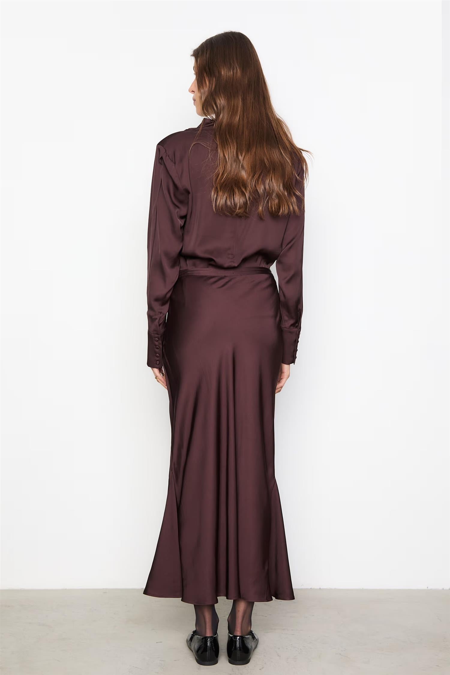 Hyro Skirt fra Camilla Pihl er et elegant midiskjørt i sateng med en flatterende silhuett og luksuriøs finish. Det lette, flytende stoffet gir en sofistikert look, perfekt både til hverdags og fest. Style Hyro Skirt fra Camilla Pihl med en enkel topp for en minimalistisk stil, eller kombiner det med den matchende toppen, Arlene Blouse, for en mer helhetlig look.