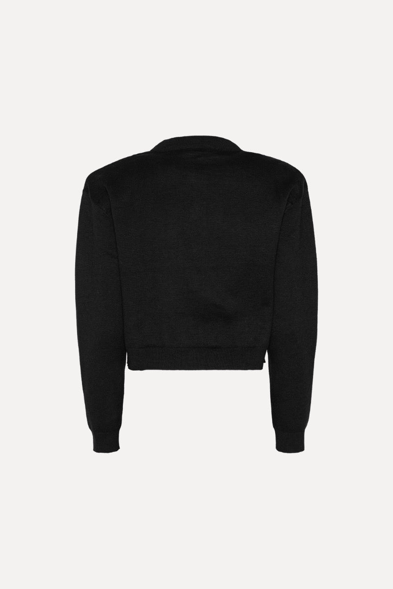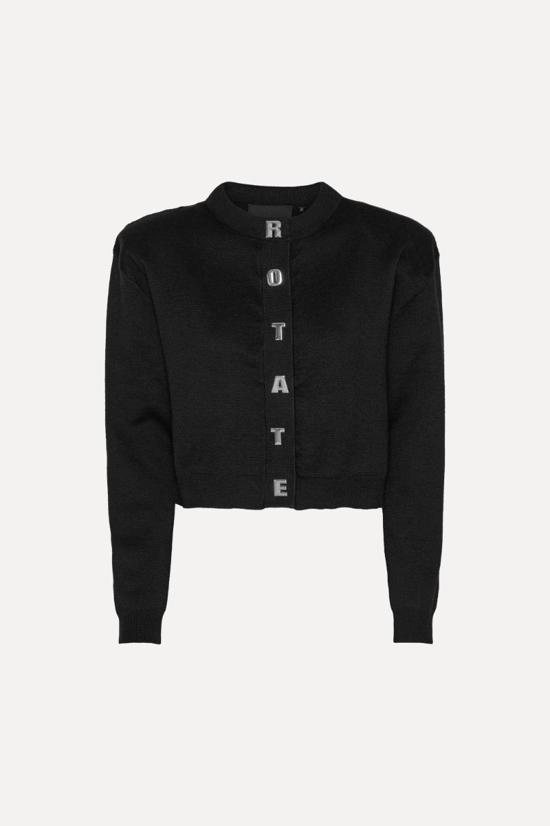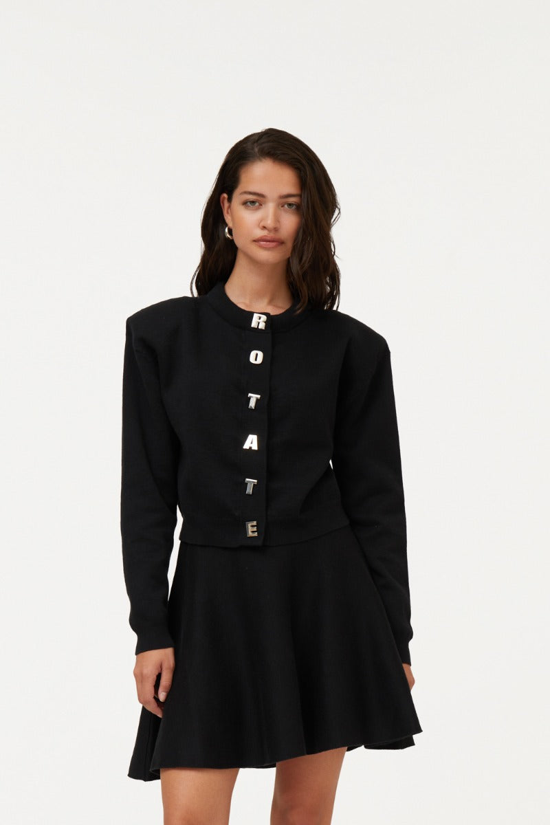 Firm Knit Cardigan fra ROTATE er en bestselger med karakter og stil. Denne cropped cardiganen har en fast strikkekvalitet og et elegant V-formet snitt som fremhever silhuetten. Firm Knit Cardigan fra ROTATE har markerte statement-skuldrer med skulderputer, samt dekorative knapper med det ikoniske roterte logo-designet. Bruk den lag-på-lag over en kjole eller alene med high waist-bukser for en moderne og kul look – perfekt både til hverdags og fest.
