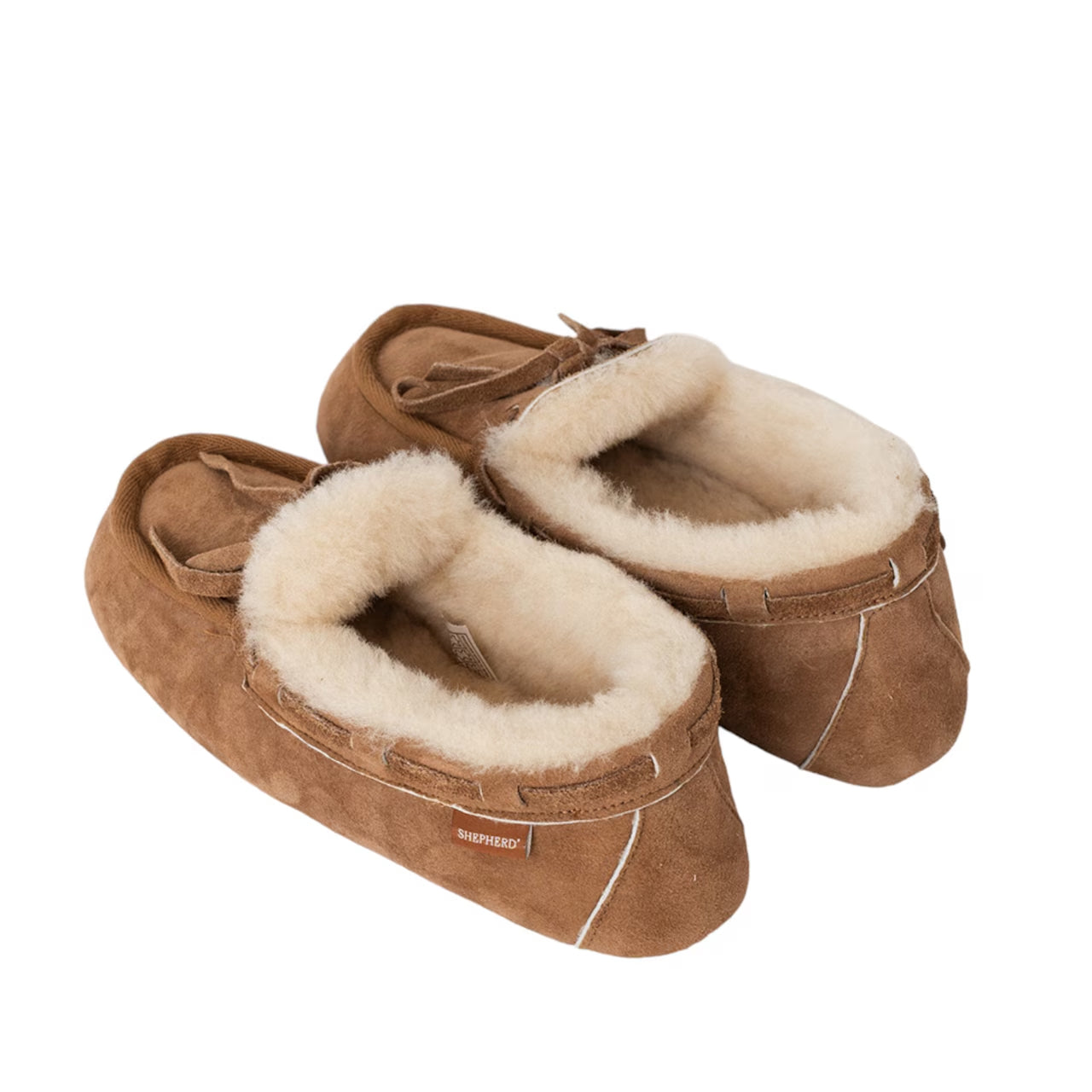 Shepherd Daisy er en elegant loafer med klassisk snøring foran, laget av saueskinn. Den myke semskede sålen gir en behagelig og avslappende følelse. Daisy er stilig og et naturlig hverdagsvalg – perfekt for slappe dager hjemme.