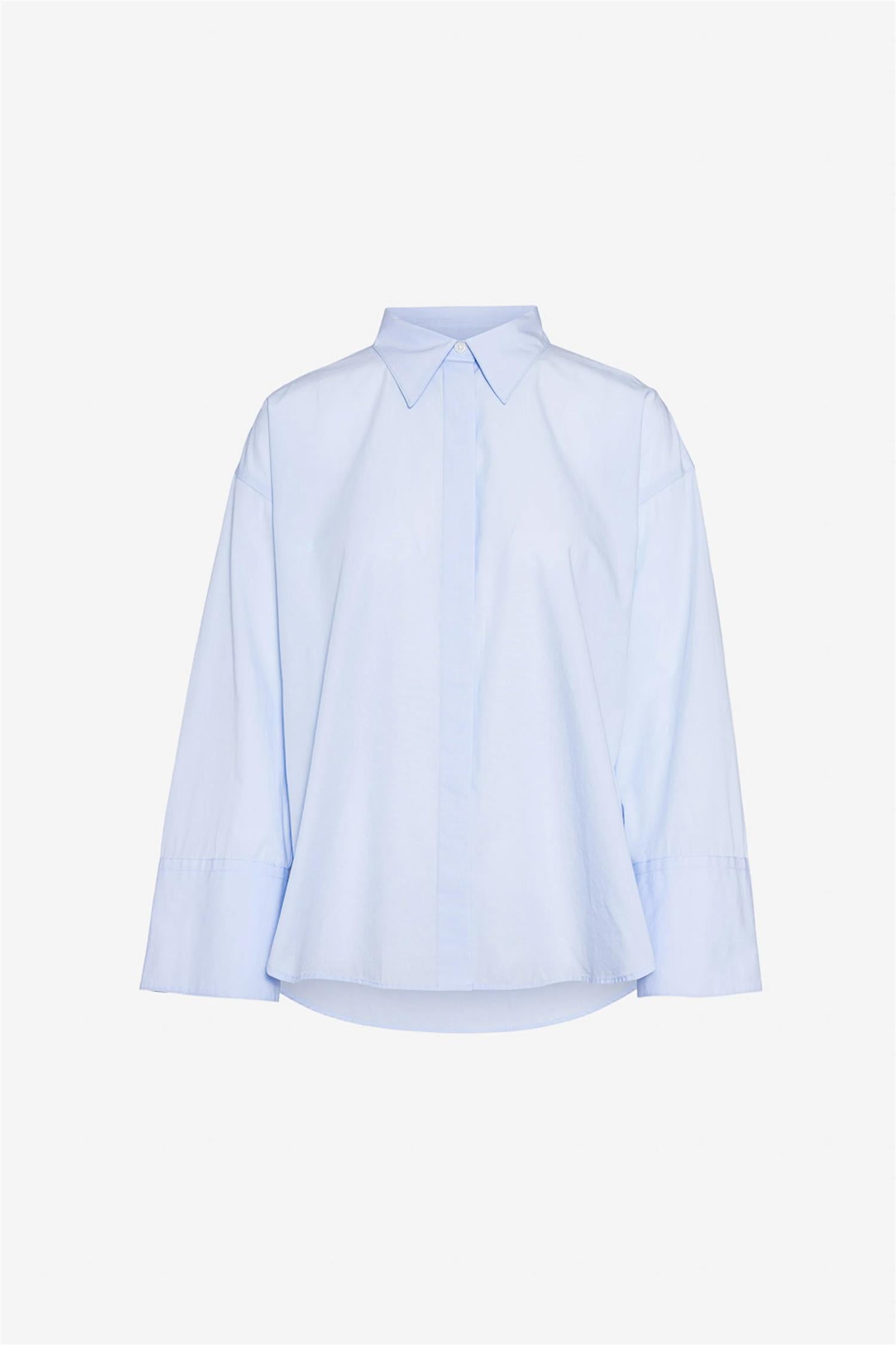 Nell Shirt fra Camilla Pihl er en klassisk og stilren skjorte med tidløst snitt og delikate detaljer. Den har lange ermer med mansjetter, klassisk krage og knappelukking foran. Den rette passformen gir et moderne uttrykk, mens den myke og behagelige kvaliteten gjør den perfekt til både jobb og fritid. Style den med dressbukser for en profesjonell look, eller med jeans og sneakers for en avslappet, men fortsatt elegant stil.