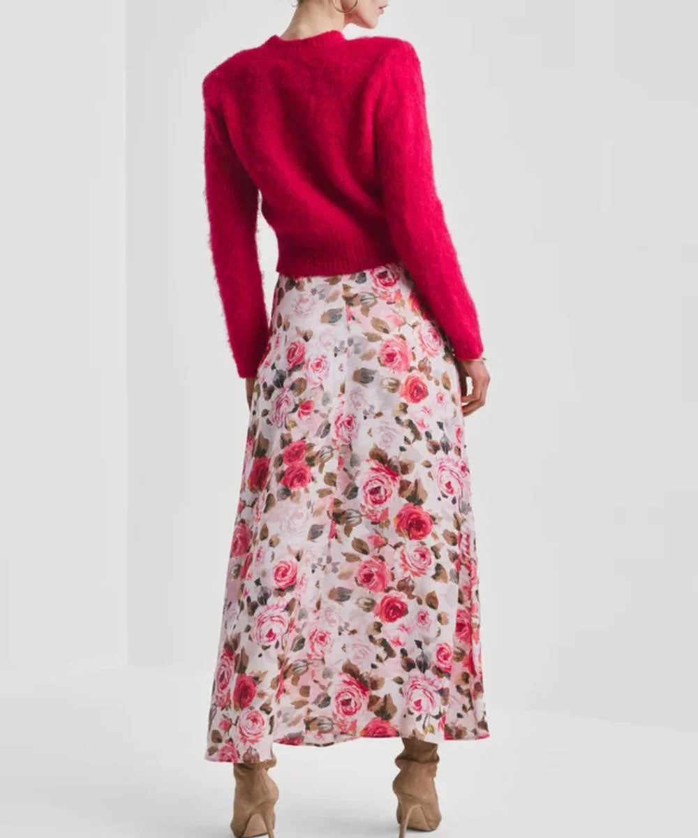 Hairy Knit Fitted Sweater Red