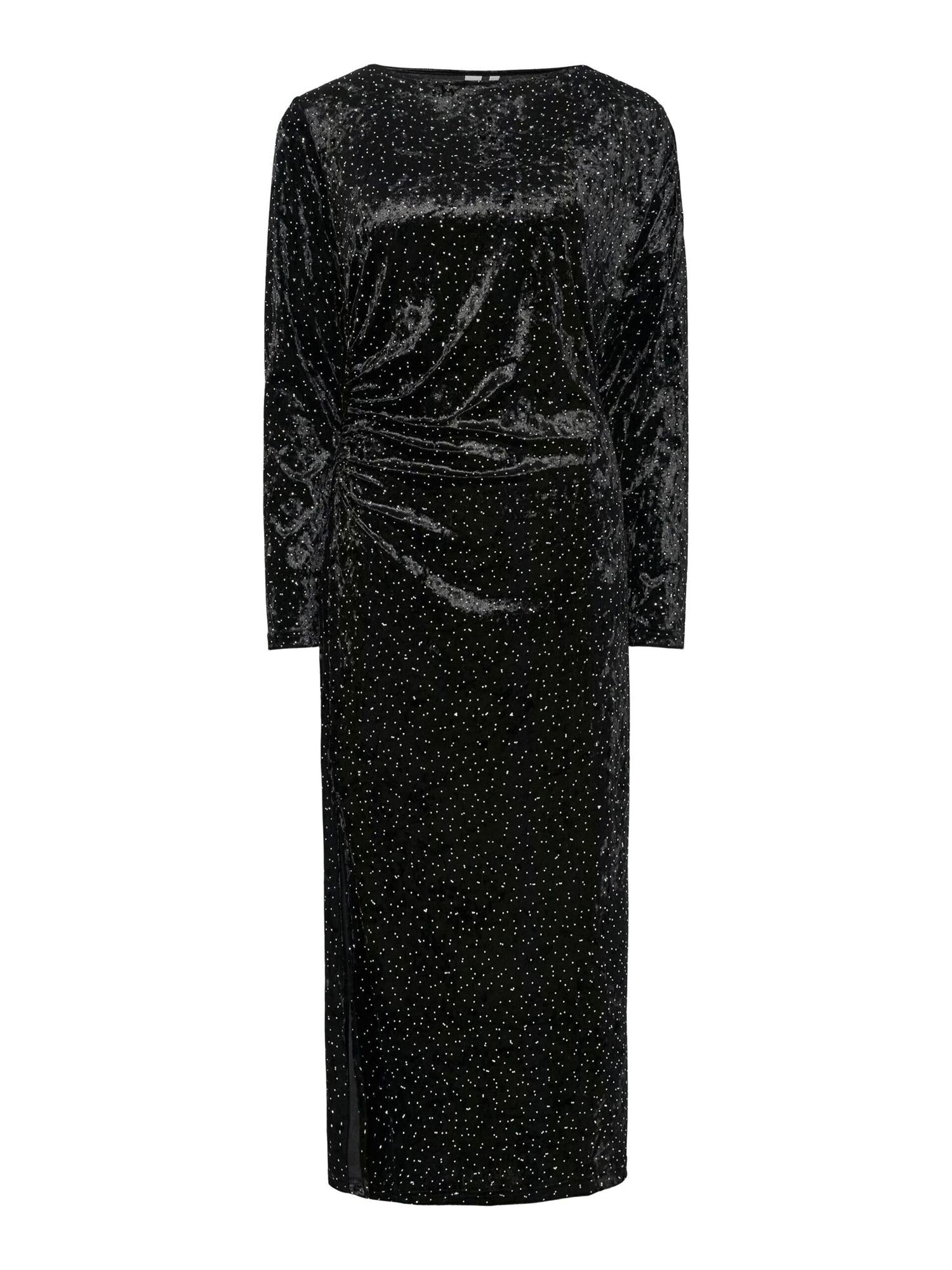 Yastillia Velvet Midikjole fra YAS er en elegant midikjole laget i myk og lodden fløyel som gir en luksuriøs følelse og komfort hele dagen. Kjolen har rund hals, lange ermer og en normal passform som fremhever en flatterende silhuett. Strassdetaljer tilfører et glitrende preg, som gjør kjolen til et perfekt valg for både fest og andre spesielle anledninger.