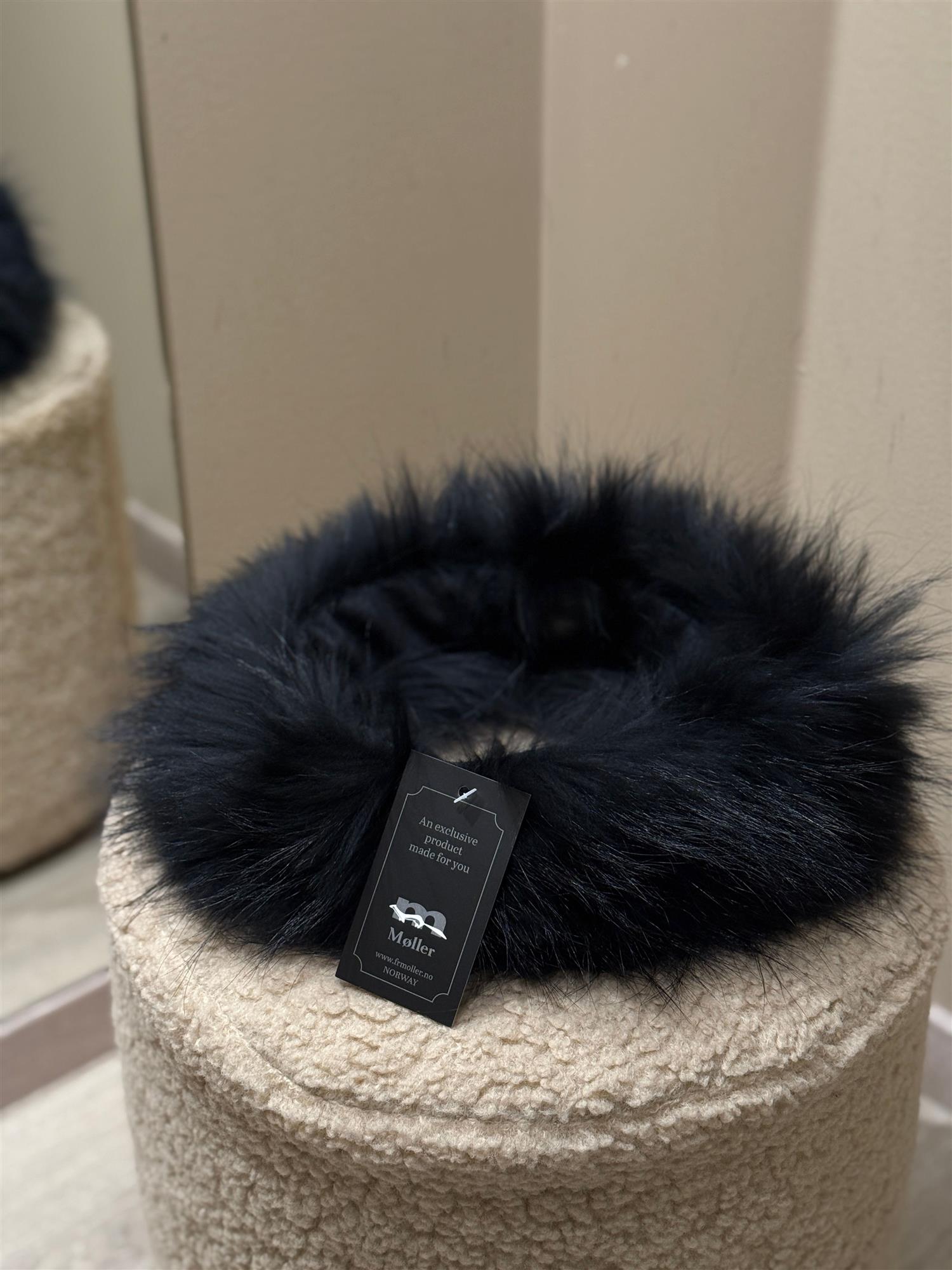 Pelskrage/-pannebånd fra Møller i sort er et varmt og luksuriøst tilbehør laget i myk vaskebjørnspels, designet for både komfort og stil gjennom kalde dager. Kragen festes med borrelås rundt halsen eller brukes som pannebånd – perfekt når du ønsker et fleksibelt plagg som både varmer og løfter antrekket.