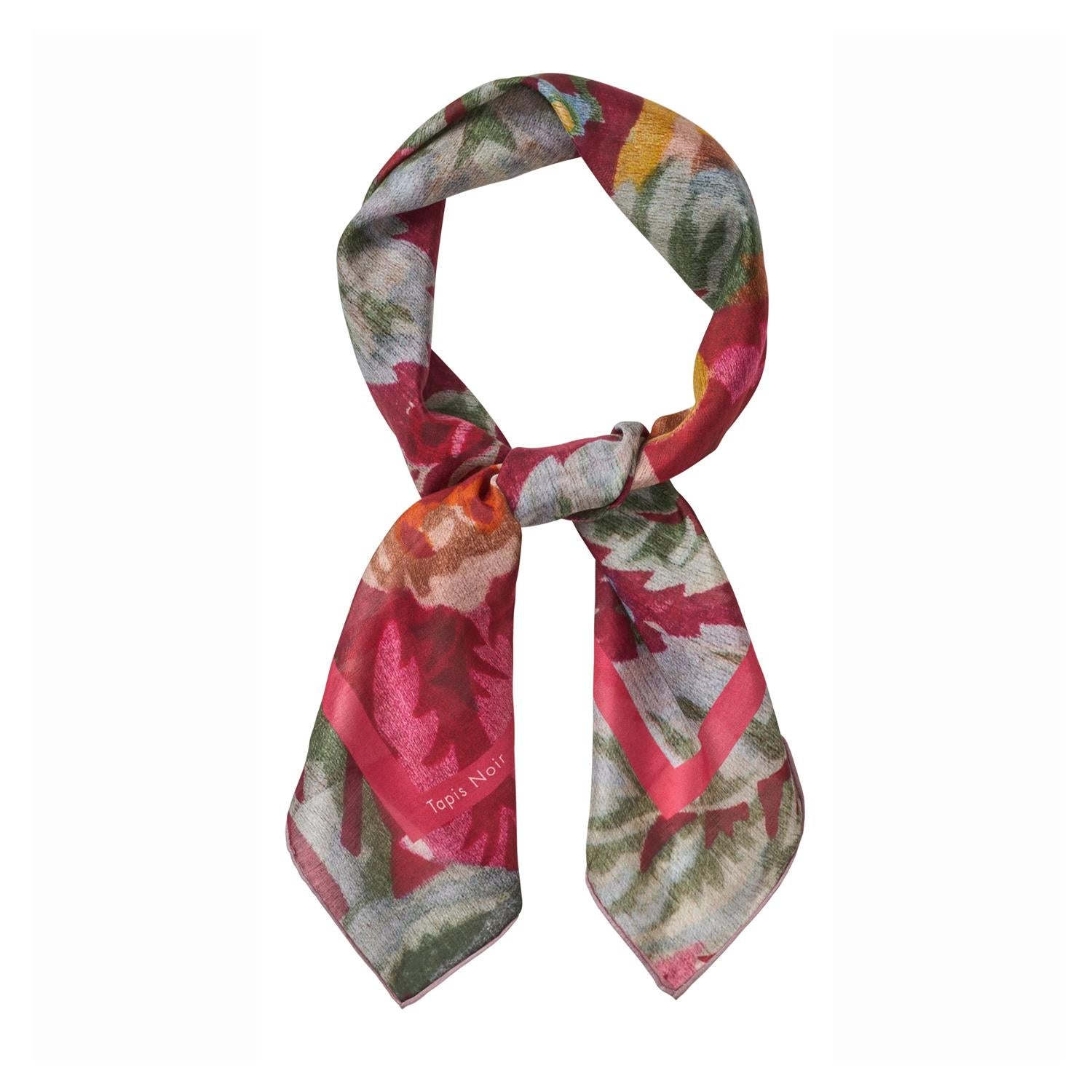 Light Small Erin Scarf fra Tapis Noir er et tidløst silkeskjerf som kombinerer eksklusiv kvalitet med gjennomført håndverk. Skjerfet er laget i en myk og lett blanding av bomull og silke, som gir en behagelig følelse mot huden og en subtil, elegant glans.